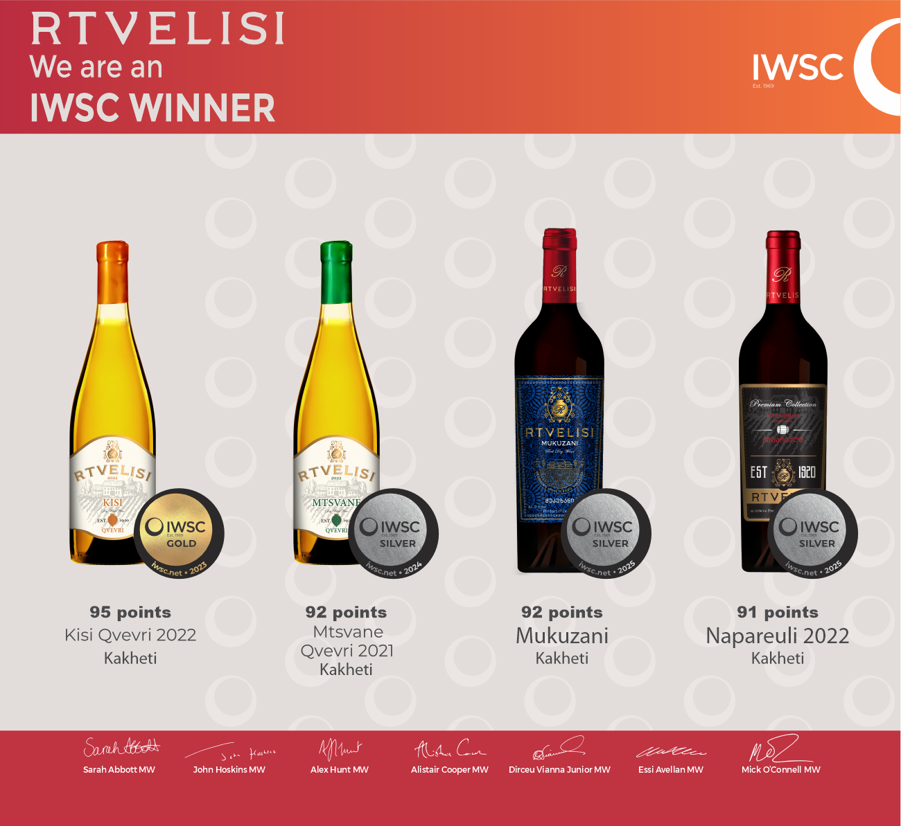 საქართველოში უკვე ტრადიციულად რამდენიმე წელია იმართება ბრიტანეთის ყველაზე პრესტიჟული საერთაშორისო ღვინისა და ალკოჰოლური სასმელების კონკურსი IWSC. რთველისის ღვინოებმა ჯამში 1 ოქროს, 6 ვერცხლის და 11 ბრინჯაოს მედლები აიღეს